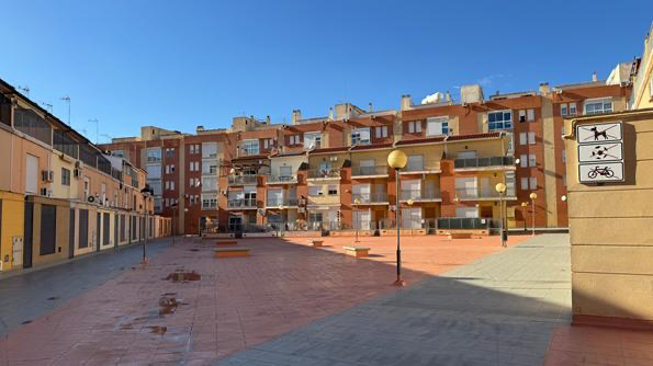 Natürlich gibt es auch in Spanien richtige Spießer-Ecken unter den zahlreichen Plätzen. Mal abgesehen von den Pfützen nach dem nächtlichen Regen kein Staubkorn auf dem Boden. Und auch rein gar nichts erlaubt, was Spaß macht, keine Hunde, kein Ballspielen, kein Fahrradfahren. Man kann sich richtig vorstellen, wie eine Omi ein Fenster aufreißt und beschwerend rausbrüllt, wenn sich nur ein paar Menschen wagen sollten, sich hier zu unterhalten ohne zu flüstern. Nun, entsprechend belebt – oder besser gesagt „entlebt“ – ist der Platz ja dann auch, wie man sieht.