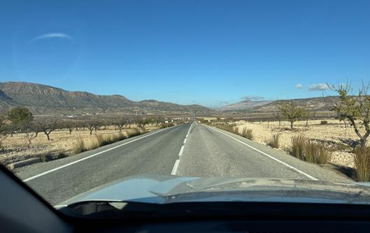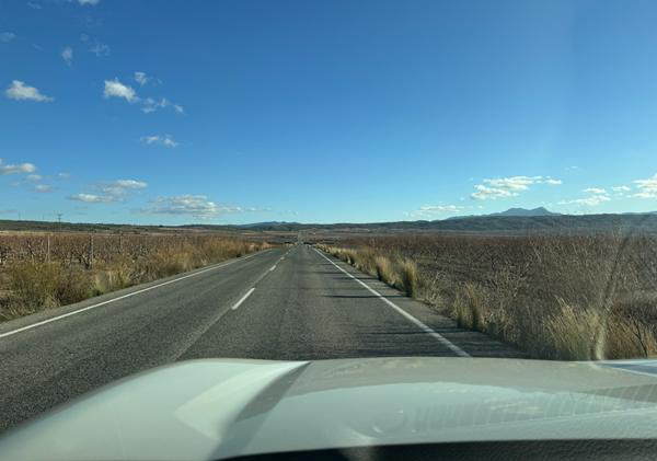 Aber hilft ja alles nichts. Irgendwann ist das Frühstück gegessen und all meine Wäsche zusammengesucht. Ich habe mir vorgenommen, in frischem Bettzeug ins neue Jahr zu starten, also habe ich das auch noch abgezogen und ins Auto geworfen. Dann nochmal das Klebeband kontrollieren, mit dem ich die immer noch defekte Radverkleidung höchst professionell befestigt habe. Und ab geht es auf den Weg in die Hauptstadt der Region hier, nach Jumilla.