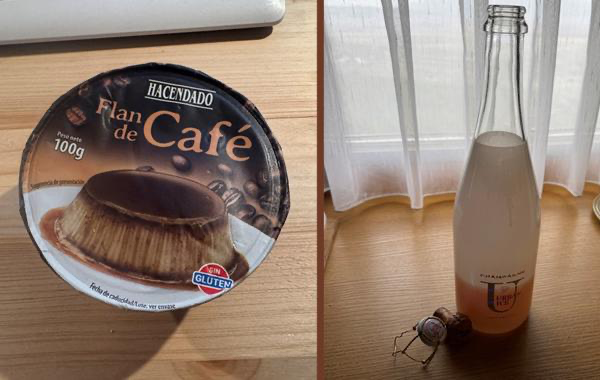 Eine Tüte Erdnüsse zum Puhlen hatte ich mir im Supermarkt mitgenommen. Und erstmals das hier in Spanien so berühmte „Flan“. Überall liest man davon, jeder redet darüber, im Supermarkt gibt es Mischungen zum Anrühren und ganze Kühltheken mit hundert unterschiedlichen Sorten. Da musste ich doch als letzte Tat des alten Jahres wenigstens noch eine Wissenslücke schließen und habe mir einen Vierer-Pack der Geschmacksrichtung „Café“ von dem Eier-Zucker-Zeugs mitgenommen.