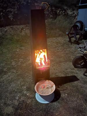 Zeit fürs Silvesterabendprogramm. Offenes Feuer in einer so dermaßen trockenen Umgebung bereitet dem Feuerwehrmann in mir Bauchweh. Beruhigter neben die wärmenden Flammen setzen konnte ich mich erst, nachdem ich eine improvisierte Glutauffangwanne unter die Ladeöffnung gestellt hatte.