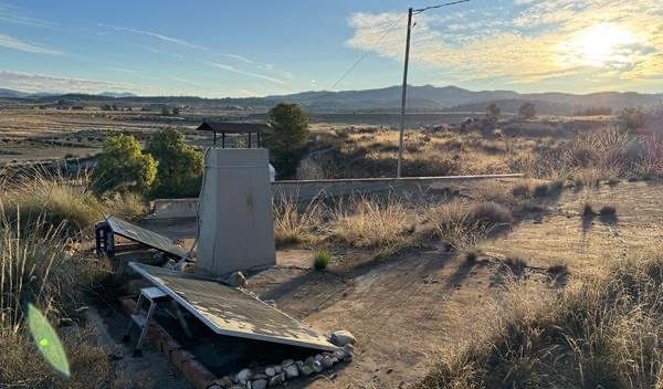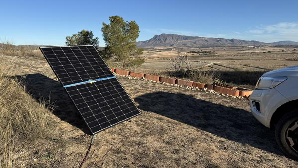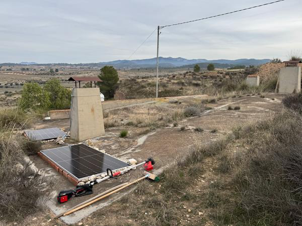An den bewölkteren Tagen – und davon gibt es leider in letzter Zeit in Spanien doch mehr, als mir lieb ist – muss ich ein bisschen nachhelfen, um aus der Morgensonne mehr rauszuholen. Bzw. wie man auf dem Bild hier sieht, die Paneele erst einmal so in die Sonne ausrichten, dass der Eispanzer abschmilzt, der sich über Nacht darauf gebildet hat. Es wird doch eindeutig ziemlich frisch in der Dunkelheit.