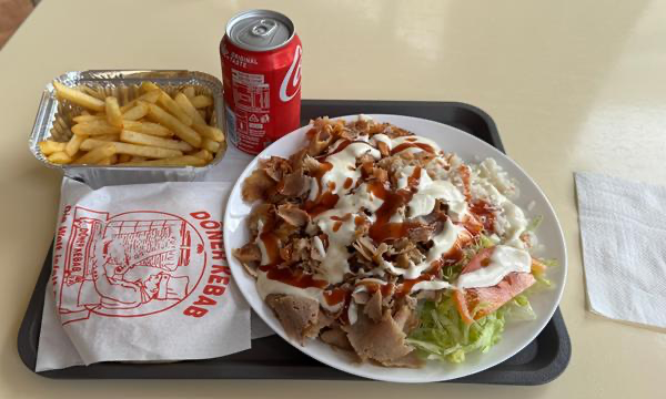 Immerhin geöffnet; ich bin ja aktuell eher in der spanischen Siesta-Zeit unterwegs, nicht in der Tageszeit, zu der Einheimische ans Mittagessen denken. Aber wann hatte ich denn zuletzt einen „normalen“ Tagesablauf? Was ist eigentlich normal? Döner ist normal, zumindest „genormt“, dachte ich mir, und trat ein.