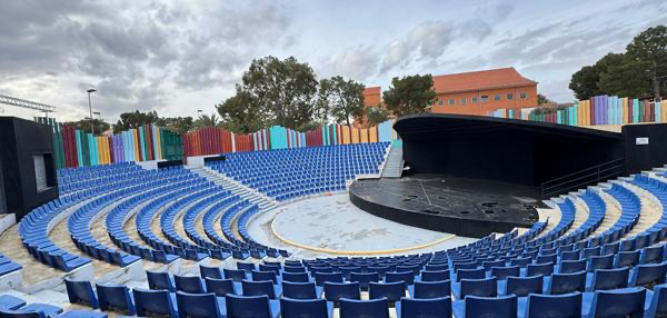 Noch ein bisschen weiter in der gleichen Fußgängerzone hat es ein großes Forum. Umzäunt von unterschiedlich hohen und in unterschiedlichen Farben gestrichenen Metallstelen. Laut einer Tafel davor handelt es sich hierbei um ein Werk eines spanischen Künstlers, der die bildliche Umsetzung eines russischen Künstlers imitierte. Farben und Form der Stelen soll dem Song „There is no business like showbusiness” entsprechen. Ein weiteres Relikt aus einer Zeit, als die Welt noch in Ordnung schien.