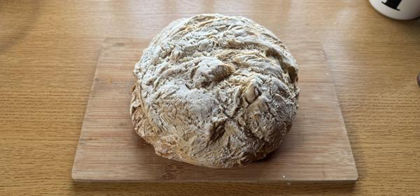 Aber es gibt ja auch Dinge, die man drinnen machen kann, ohne dabei vorm Bildschirm zu sitzen. Meine Brotversorgung sicherstellen beispielsweise. Langsam kriege ich echt Übung im Backen. Nur an der Mehlmischung muss ich weiter experimentieren. Je mehr Weizenmehl, desto langweiliger das Brot. Je mehr Weizen ich durch Roggen oder Dinkel ersetze … desto krümeliger wird das Ergebnis. Alles in allem bin ich mit meinen Backkünsten ja zufrieden. Geschmacklich absolut okay. Nur in Sachen Verarbeiten beim Schneiden schon eine Herausforderung. Ist mein Lieblingswort im heutigen Newsletter, scheint es.