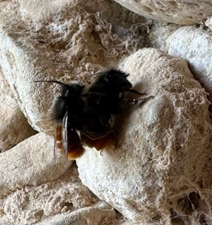 Als ich die beiden Bienen an der Höhlenwand bei ihrem fleißigen Akt beobachtete, musste ich daran denken. Frühlingsgefühle, wo immer man auch hinschaut. Was mich ein bisschen erschreckte, waren die vielen im Umkreis um meine Beobachtung des pelzigen Pärchens auf dem Boden liegenden toten Bienen. So sehr beim Begatten verausgabt, dass am Ende alle Lebensenergie ins Weibchen übergegangen ist? An Nahrung kann es nicht liegen, es gibt hier ausreichend Blüten und nach dem vielen Regen auch überall Wasser. Die Natur ist schon manchmal grausam, scheint es.
