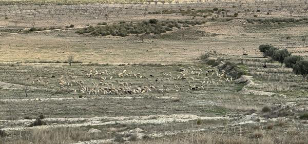 Ich höre das inzwischen schon so gewohnte Bimmeln der Ziegenglocken. Und ja, sie invadieren gerade mal wieder meinen Campo. Irgendwie freut es mich, dass die brachliegende Fläche doch noch einen Nutzen findet. Meine Augen wandern über die auseinanderlaufende Herde und suchen den Hirten. Auch scheint es sich bei den dunkleren Tieren um die berühmten schwarzen Schafe, nicht aber um den Schäferhund zu handeln. Ich musste den Zoom benutzen, um die Herren der Herde ausfindig zu machen.
