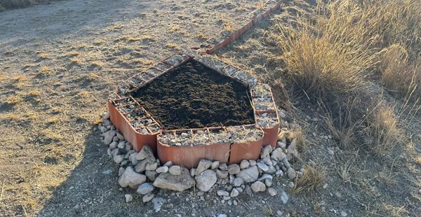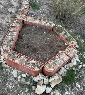 Doch es waren einige Steine mehr, als ich für meinen Zweck brauchte, so habe ich am unteren Ende der Einfahrt diesen kleinen Kreis angelegt. Und ganz praktisch einfach als Komposthaufen genutzt, denn ein Loch ausheben ist bei dem steinigen Boden hier eine echte Herausforderung.