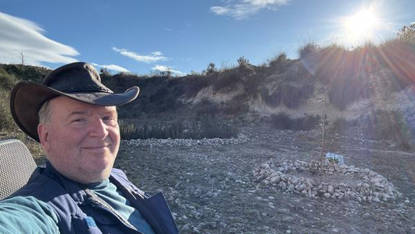 Zur Erholung habe ich dann die Lücke zwischen Regen und Wind für ein Päuschen auf dem erwähnten Kiri-Plaza genutzt. Vielleicht wird es auch ein ‚Plaza de Rosmarin‘. Wenn ich demnächst bei richtig schönem Wetter eine zweite Videobegehung mache, werde ich die Namensgebung auch nochmal aufgreifen. Eigentlich hatte ich ja die Hoffnung, bis dahin mein Steine-Problem unter Kontrolle zu bekommen. Doch irgendein böser Wichtel scheint jede Nacht vorbeizukommen und neue Steine zu verteilen. Wird noch ein wenig dauern, bis das Gelände „barfußtauglich“ ist.